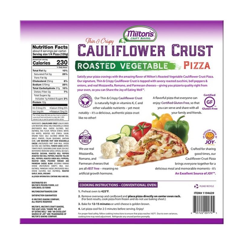 Other Food Costco Offers. Based on Miltons cauliflower Pizza nutrition facts 14 pizza has about 27g of carbohydrate and the Kirkland cauliflower pizza has 31g. If you buy a single slice it is 16th of a pizza.