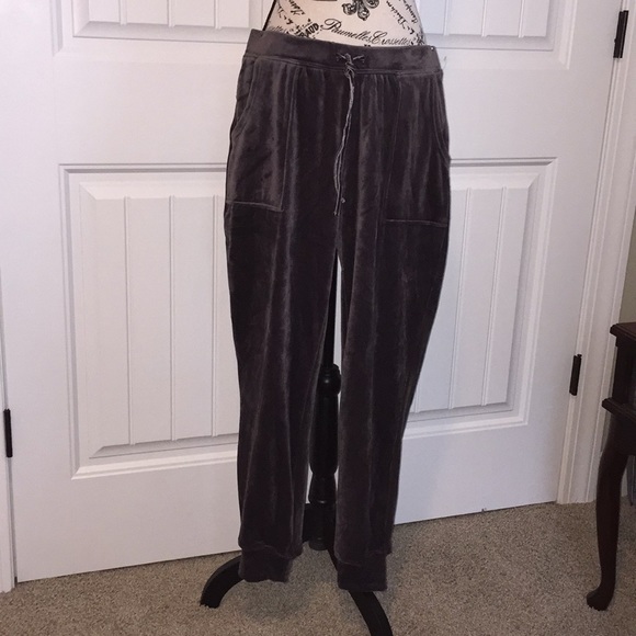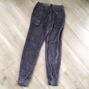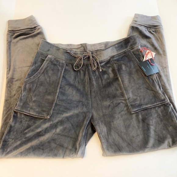 Steel grey velour lounge jogger pant. 95 Polyester 5 Spandex. NEW Cynthia Rowley Womens Top Size S.